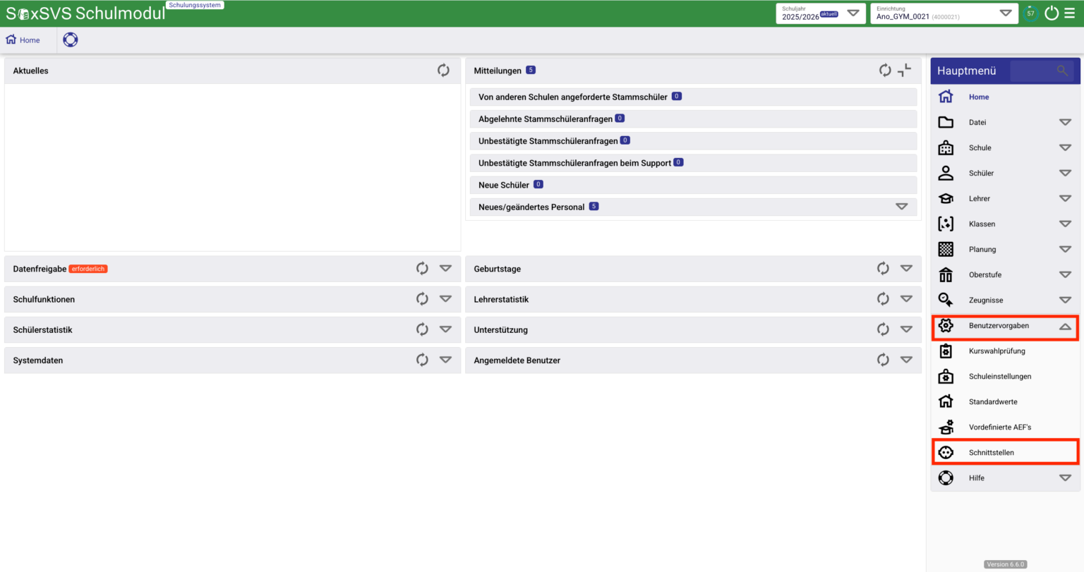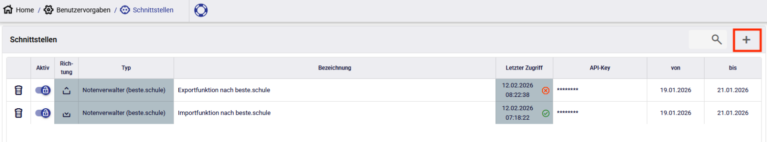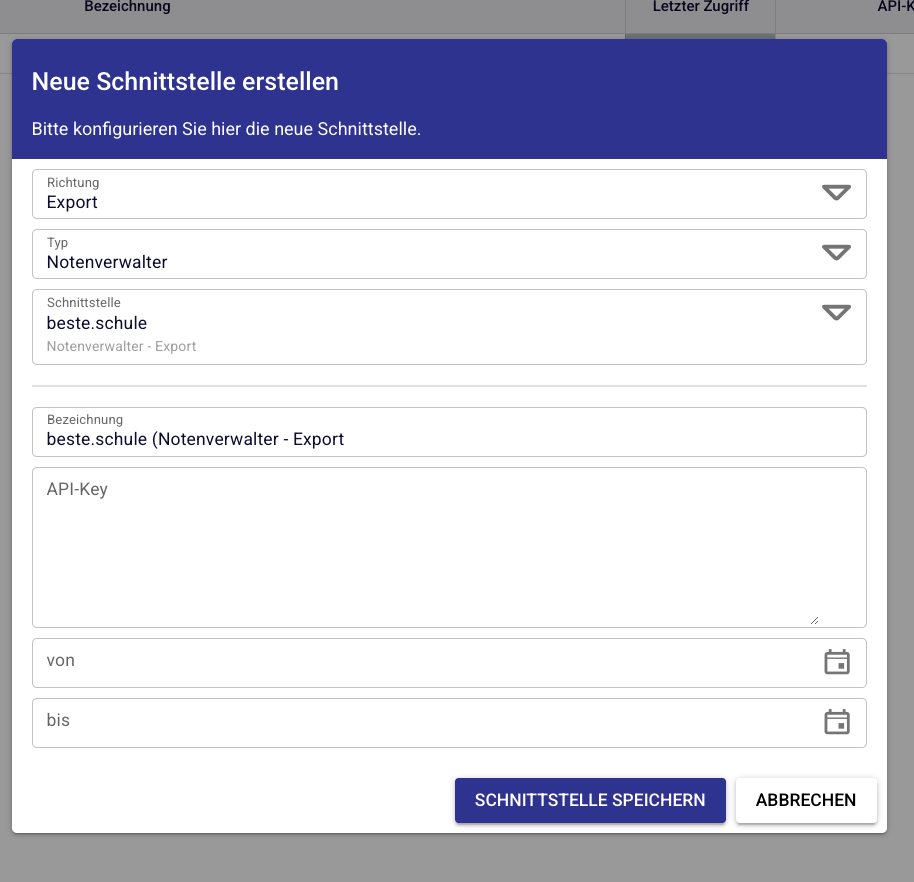 Die neue Schnittstelle wird derzeit mit ersten Schulen getestet. Bitte haben Sie noch etwas Geduld bis voraussichtlich April 2026. Sobald die Schnittstelle für Sie verfügbar ist, informieren wir Sie umgehend.