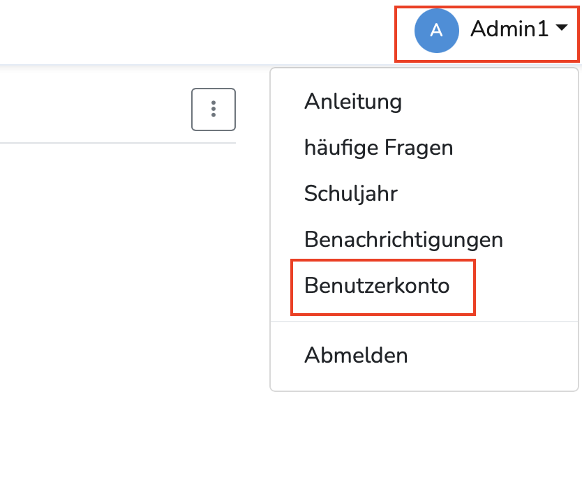 Klicken Sie in Ihrem beste.schule Admin-Account oben rechts auf Ihren Benutzernamen und wählen Sie "Benutzerkonto":