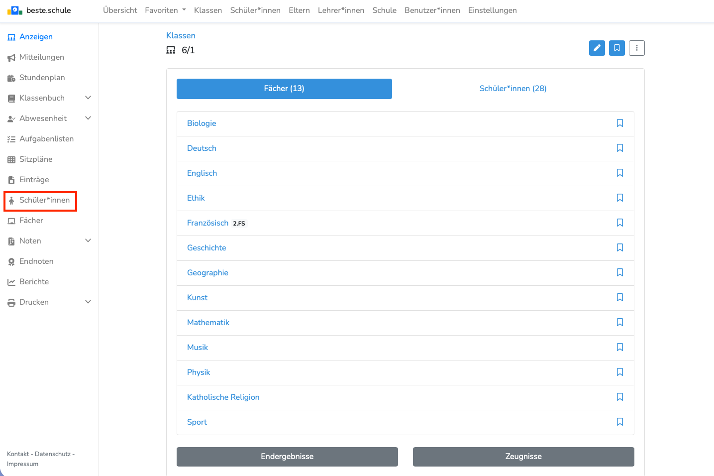 Sie haben die Möglichkeit in beste.schule alle Daten von Schüler*innen, Klassen, Lehrkräfte usw. auch manuell anzupassen.
